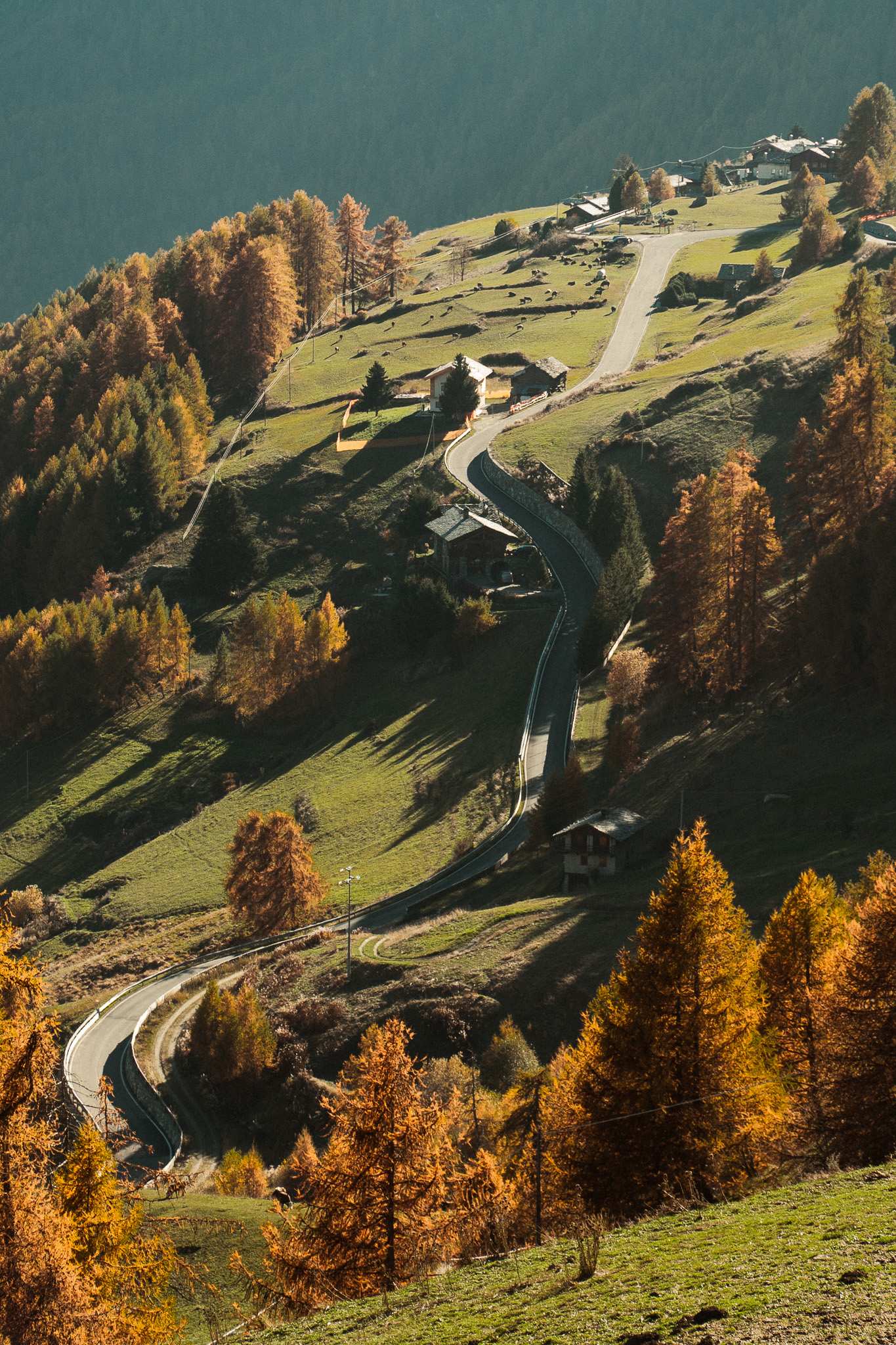 Mosaico autunnale: ramato, carminio, bronzo antico, ambra, oro brunito e ocra intenso.